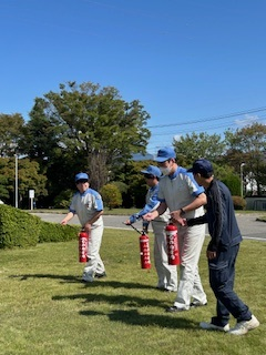 点呼、初期消火、救護などの「防災訓練」を実施いたしました。